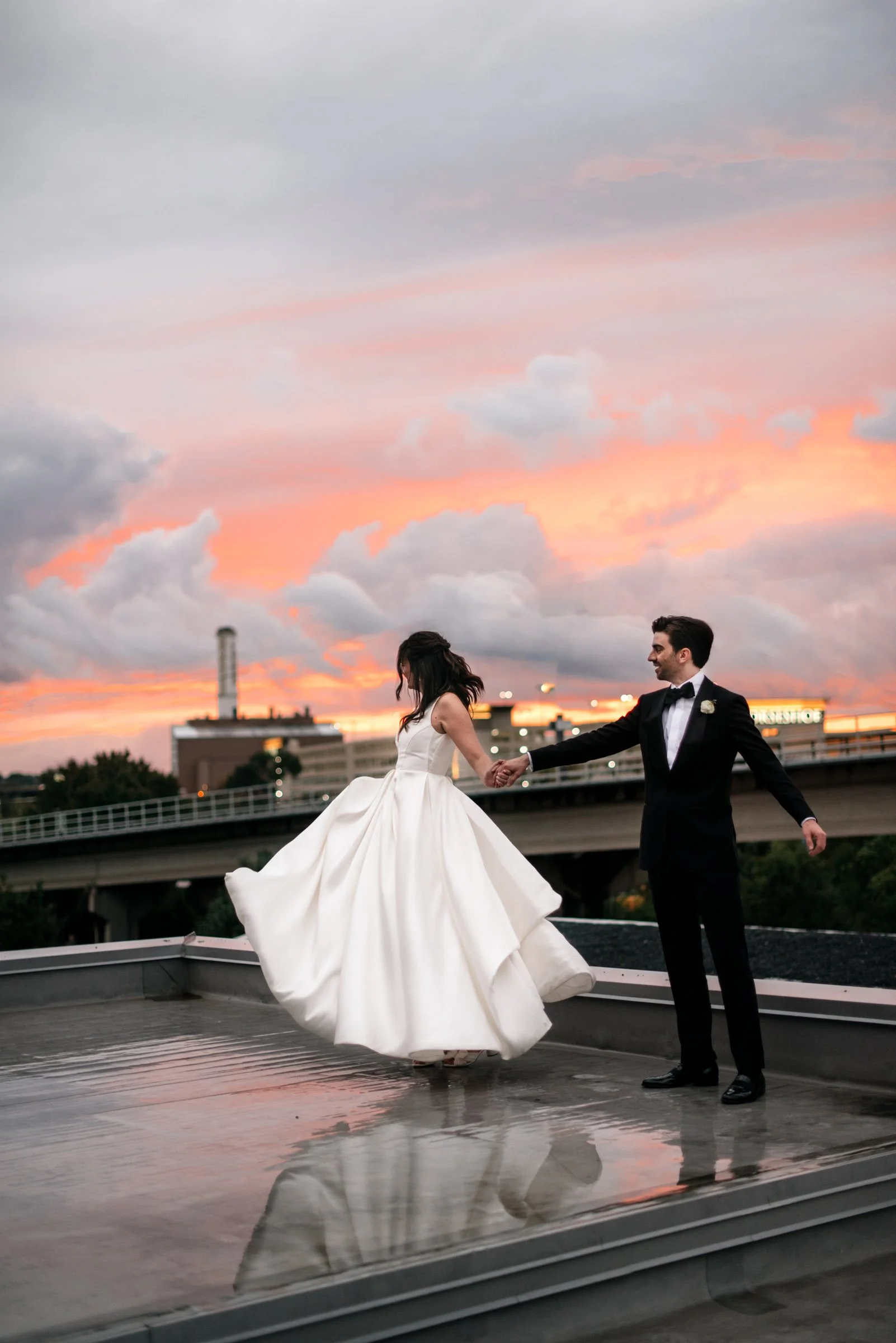 The Winslow Baltimore is such a unique, beautiful space for weddings. I loved the modern-industrial feel of the venue, and the rain let up just enough to head to the rooftop for quick sunset portraits. Lauren and Charlie set the attire as “creative black tie” – meaning black tie, but make it red carpet. The guests absolutely came through, making this one of the most fashionable weddings I’ve had the pleasure of shooting.